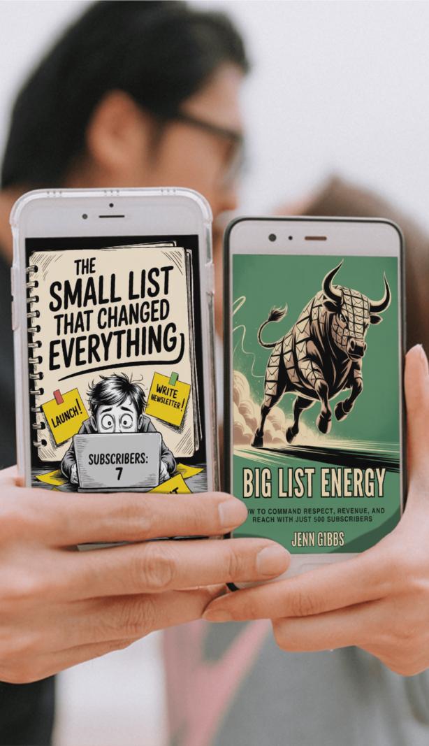 The newsletter industry is obsessed with list size. We're not. This book makes the case — with real frameworks and real math — that a small, well-built list outperforms a bloated one every time. If you're sitting on a list that isn't performing the way it should, start here.→ Get Big List Energy---Also by Jenn Gibbs:The Small List That Changed Everything
